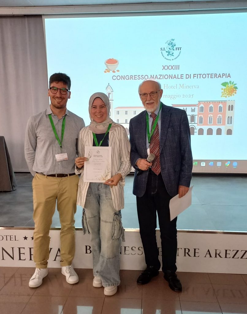 La dott.ssa Safwa Moheb El Haddad ha ricevuto il Premio Italo Taddei per la sua tesi sperimentale di laurea in Farmacia dal titolo “Dall’Etnofarmacologia del Niger allo studio delle proprietà antinfiammatorie di Prosopis africana (Guill. & Perr) Taub. in cellule gastriche”.